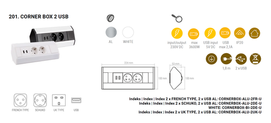 EM STOCKKombi Box USB com Cabo 3m Alumínio