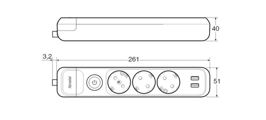 Extensão 3 Tomadas 16A com Interruptor e 2 Portas USB Preto