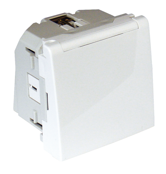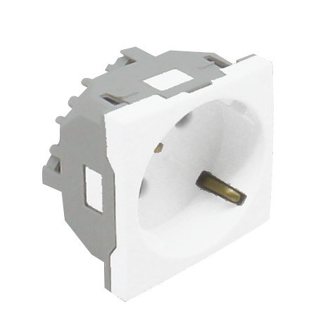 Tomada Schuko com Alvéolos Planos, Ligação Rápida, Tampa e Obturador 2 Módulos Branco