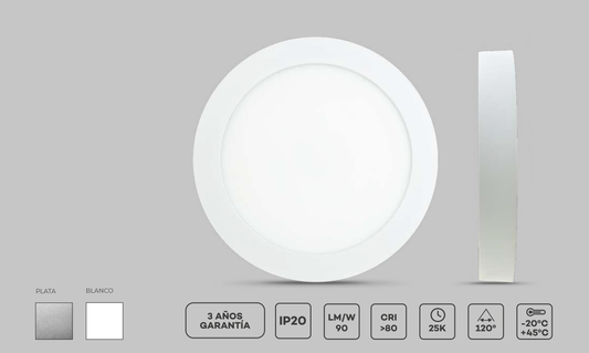 Downlight Saliente LED Dogma Redondo Prateado 18W 1620LM (3000K/4000K/6000K)