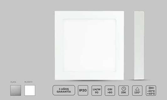 Downlight Saliente LED Dogma Quadrado Prateado 18W 1620LM (3000K/4000K/6000K)