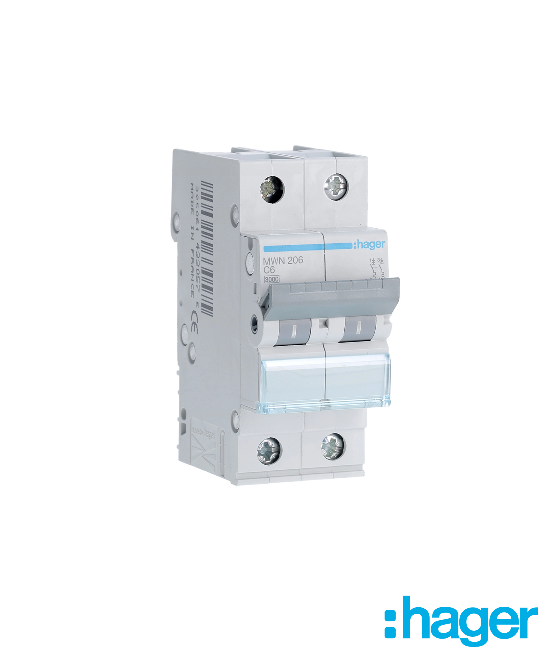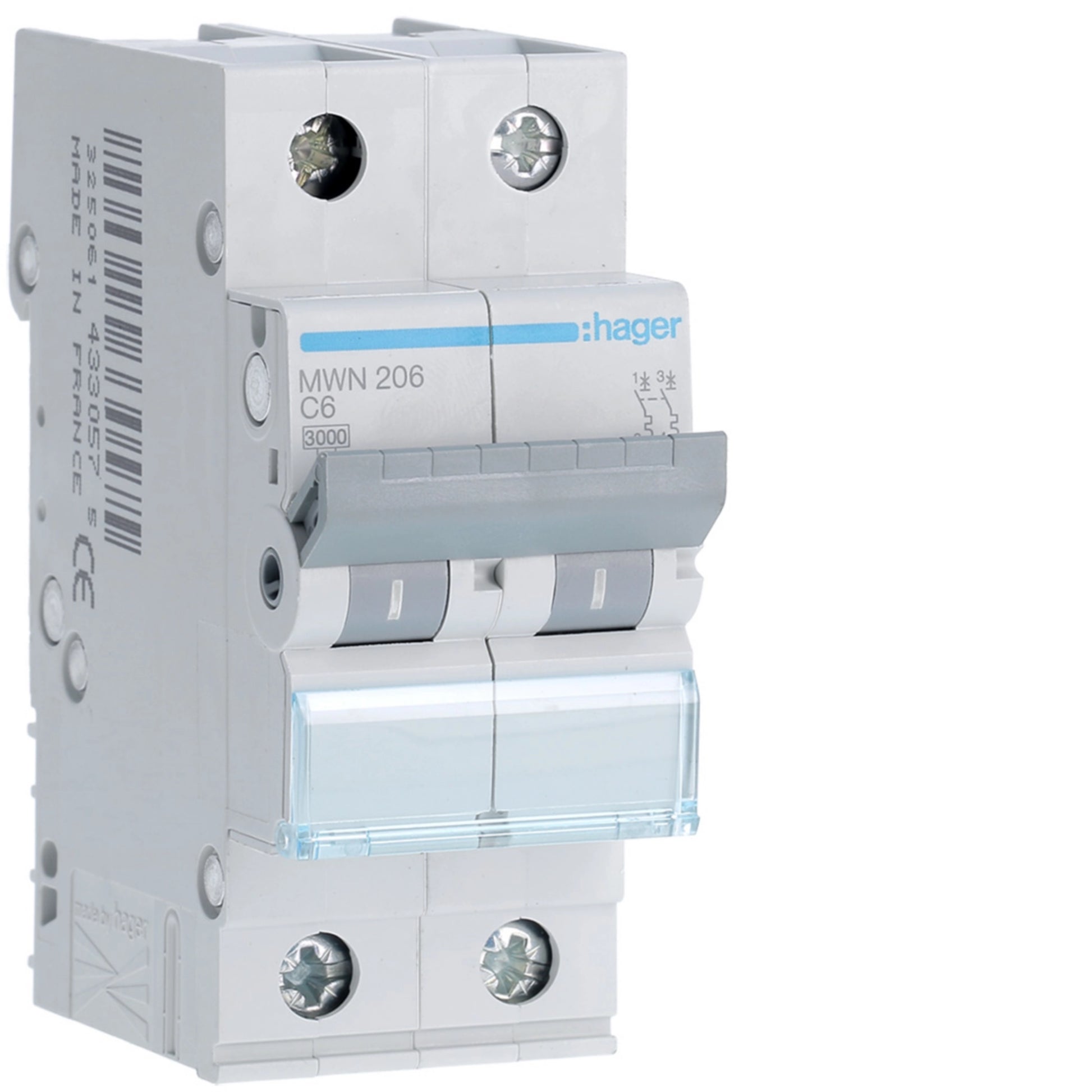 MWN206 - Disjuntor 2P 6A C 3kA 2 Módulos