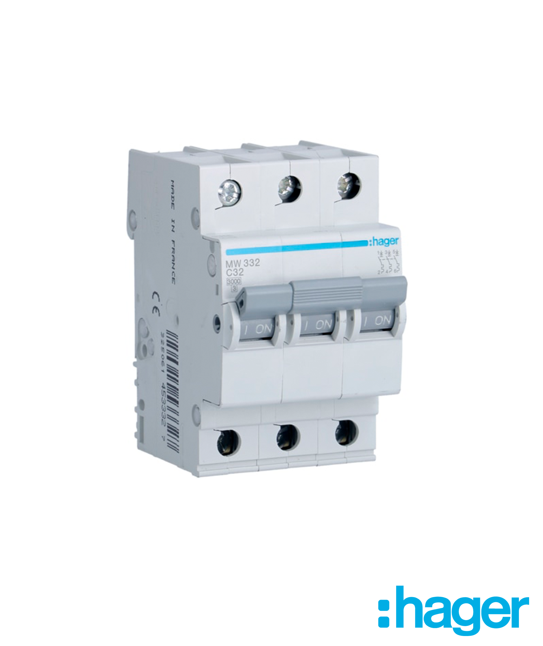 MW332 - Disjuntor 3P 32A C 3kA 3 Módulos