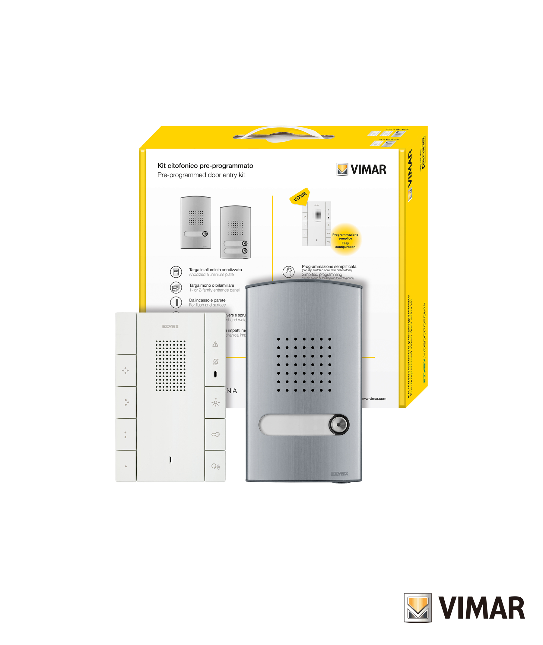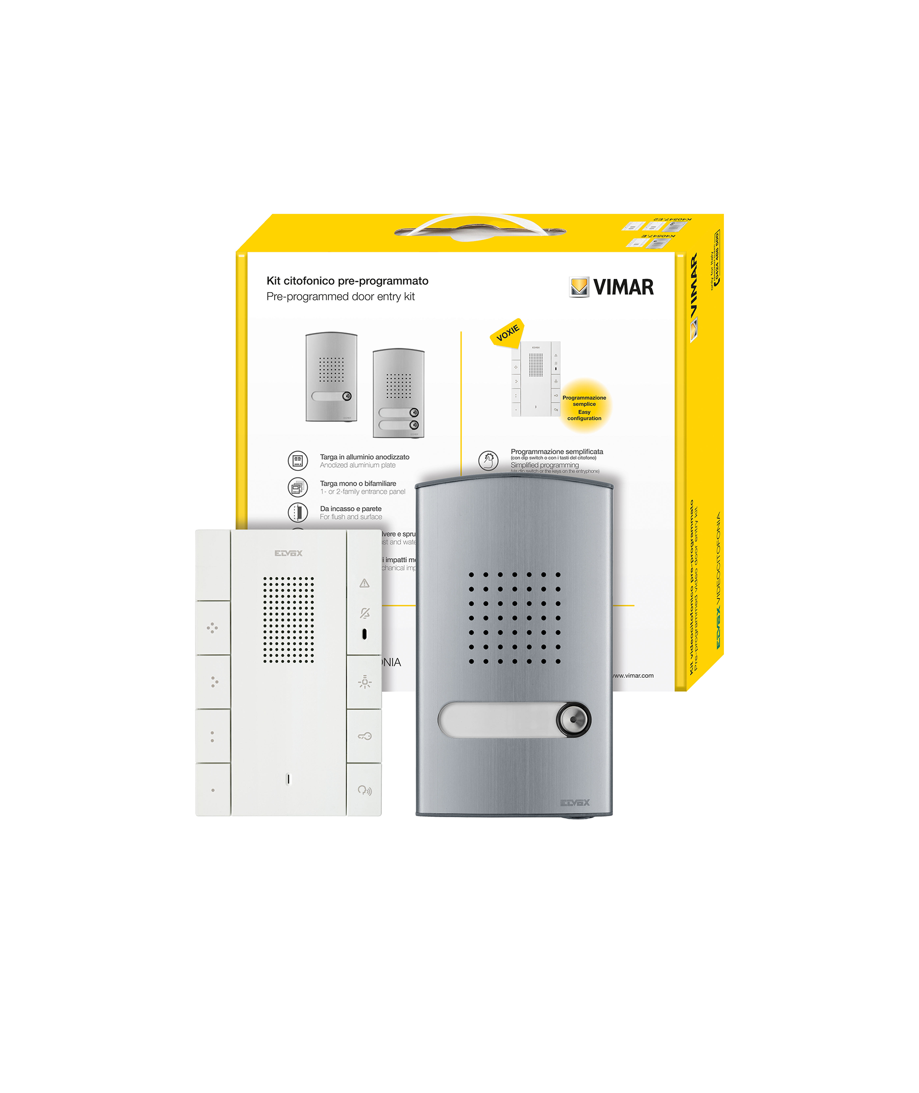 O Kit Áudio Porteiro Unifamiliar Voxie da Elvox, referência K40547E, inclui: