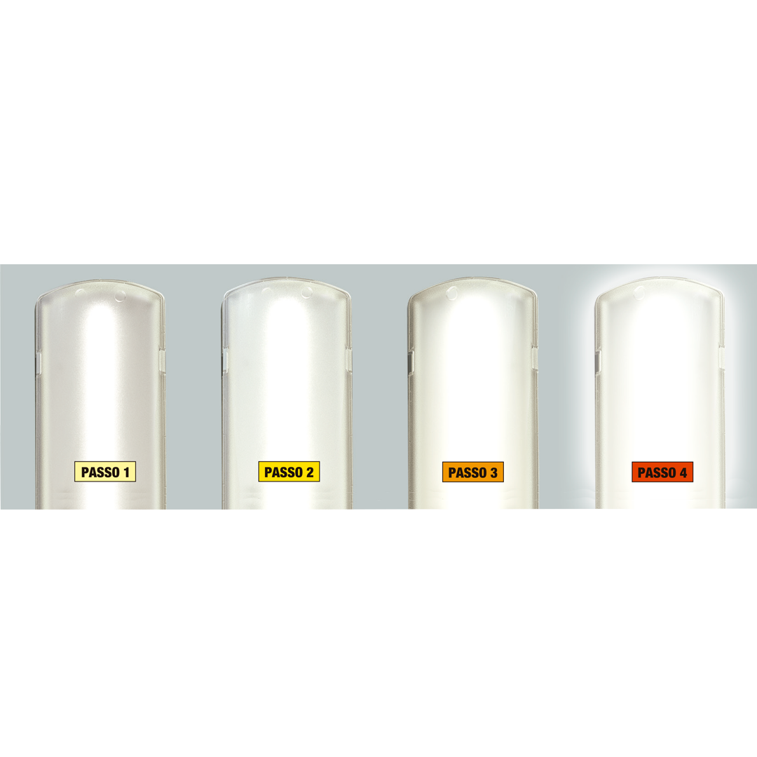 A BS100 da Beghelli é uma luminária Led que permite a regulação do fluxo luminoso em quatro níveis distintos, através de um driver equipado com selector (já incorporado na luminária).